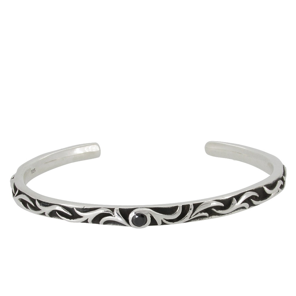☆送料無料☆ブラックジルコニア&唐草 シルバーバングル