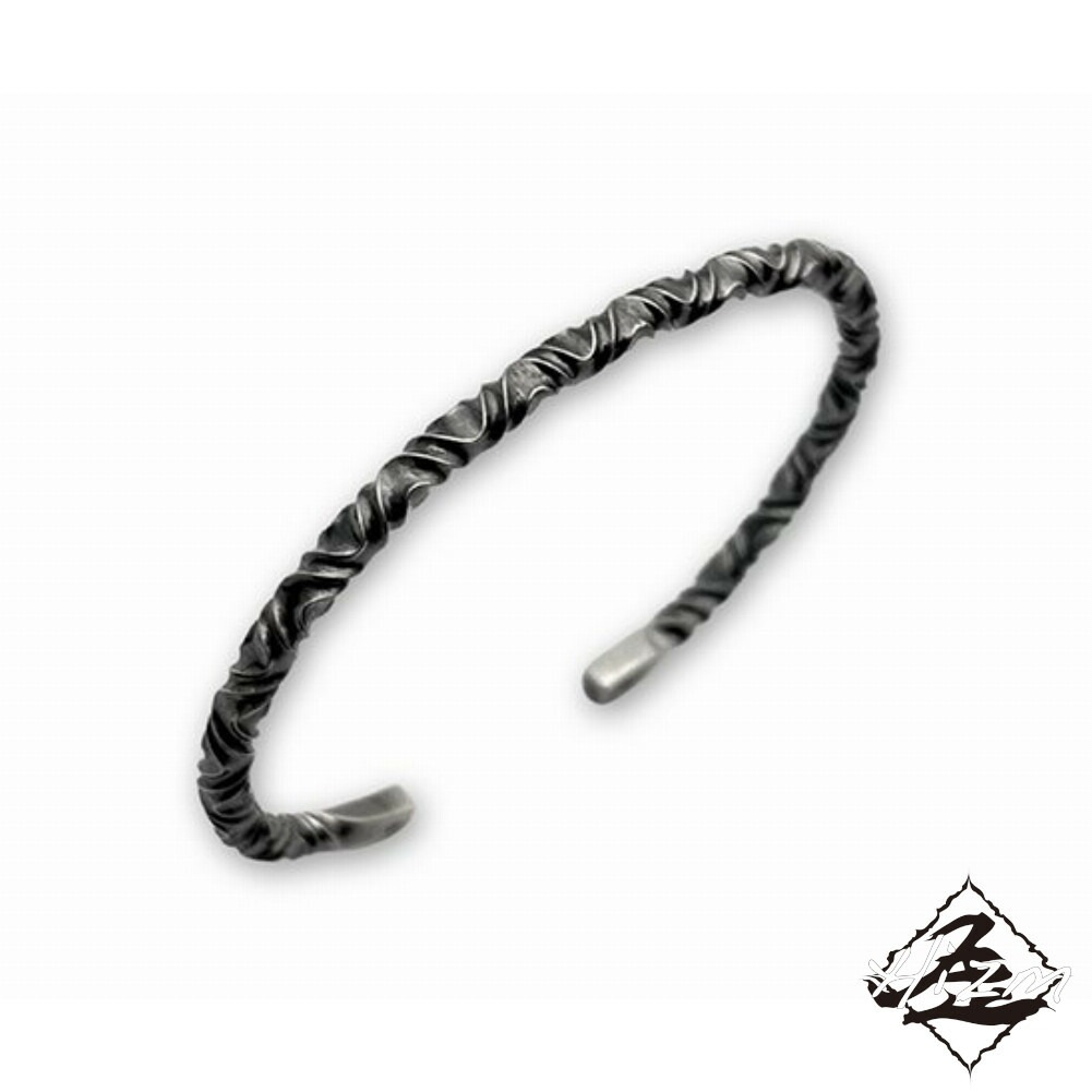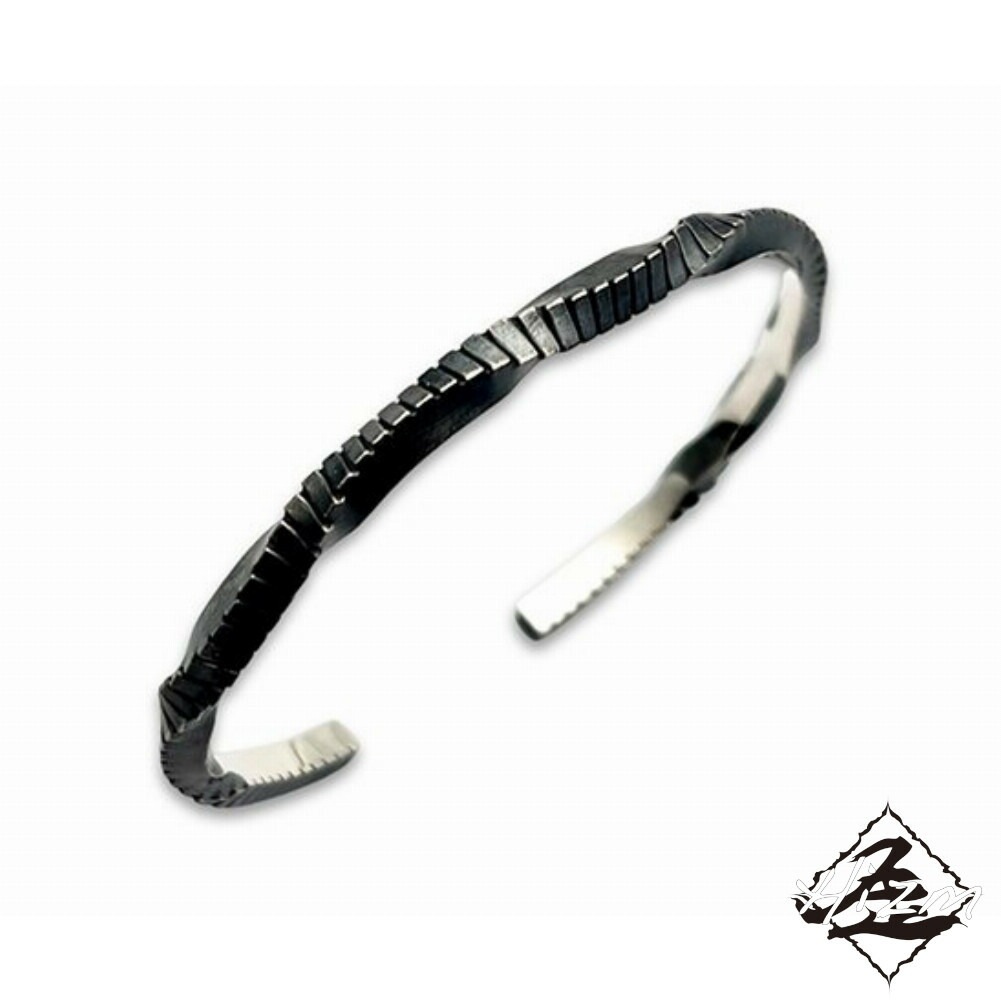 Hizm 腐蝕テクスチャーブレスレット S 燻し鏡面仕上げ シルバー925 15-22cm ブレスレット 手首 上品 大人 きれい...