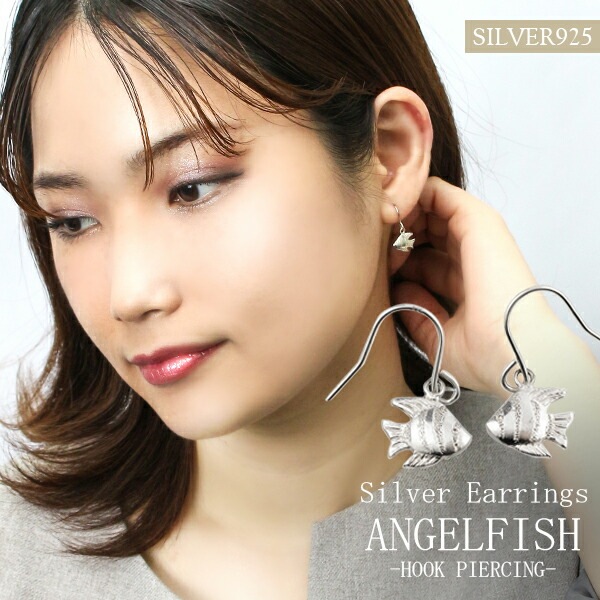 揺れる 熱帯魚 エンゼルフィッシュ フックピアス 2P 両耳用 シルバー925 ピアス 立体 チャーム 魚 フィッシュ 縞模様 動...