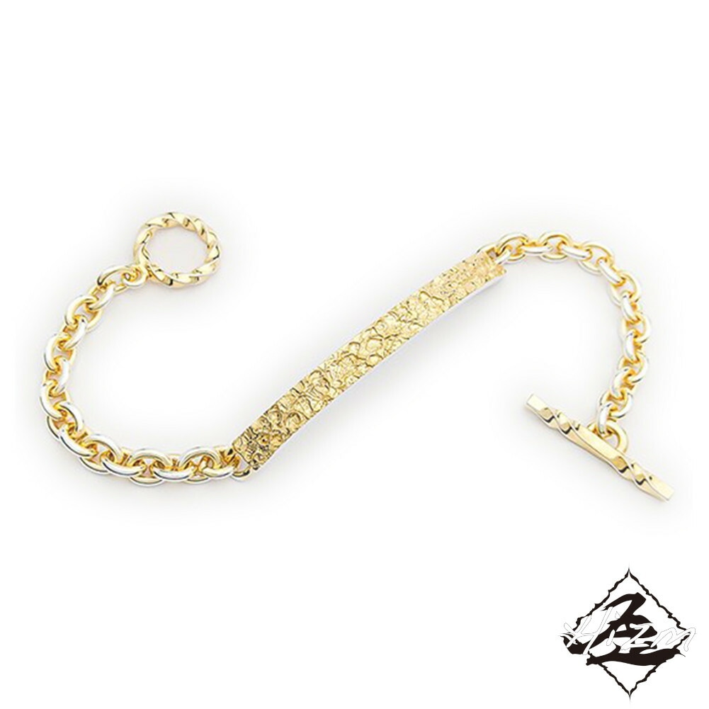 Hizm 腐蝕テクスチャーブレスレット M 24Kコーティング金銀2色仕上げ シルバー925 15-22cm ブレスレット 手首 ...