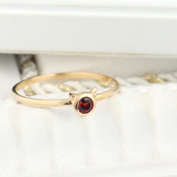 猫 ガーネット ゴールド リング K10 キャット 猫リング 天然石 一粒 指輪 10金 10k かわいい 猫好き アクセサリー ...