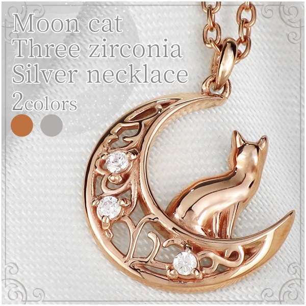輝く 月 と 猫 シルバー ネックレス 猫型BOX付 レディース プレゼント 女性 レディースネックレス 猫ネックレス ピンクゴー...
