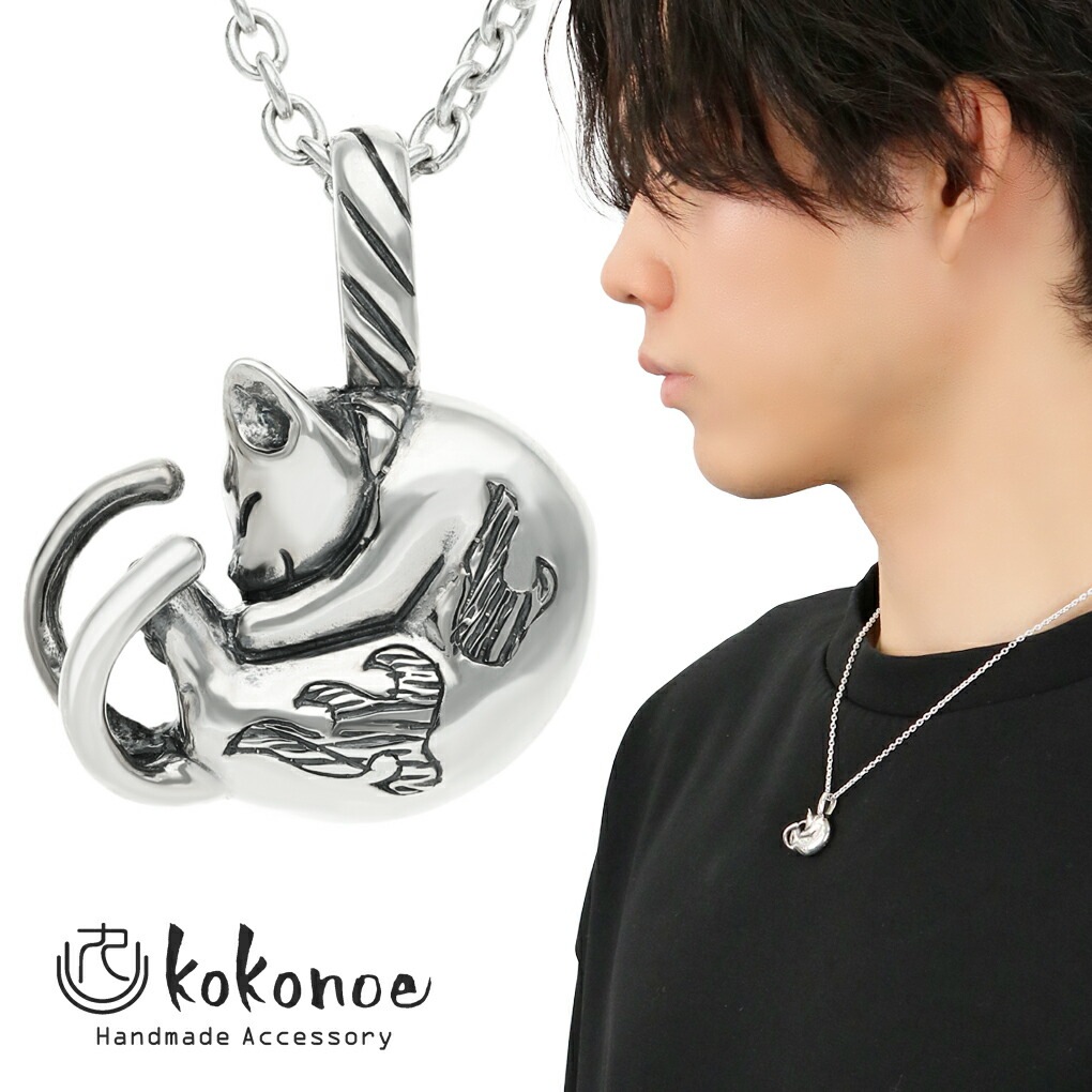 kokonoe 眠り猫 猫又 ネックレス ペンダント ペンダントトップ ペンダントチャーム シルバー 925 猫 ねこ 化け猫 動...