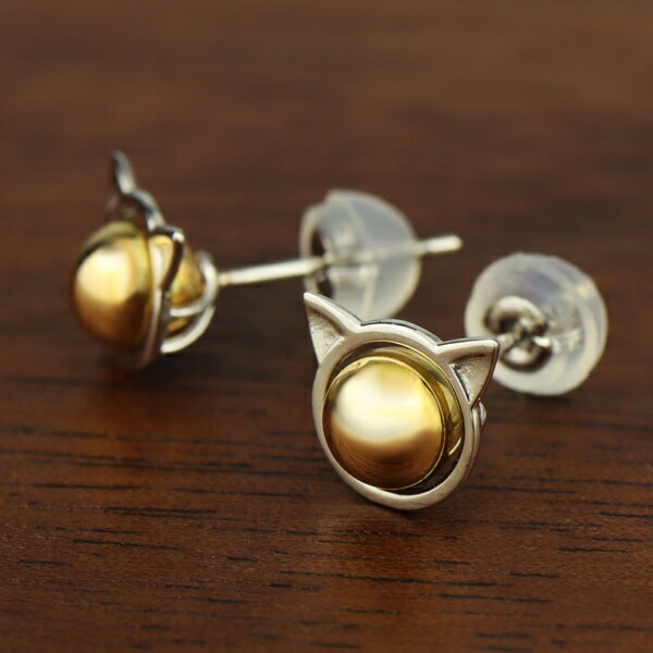 PT900 K18 猫 ピアス 2P 両耳用 プラチナ ゴールド 地金 ねこ キャット 丸玉 ボールピアス スタッド シンプル 上...