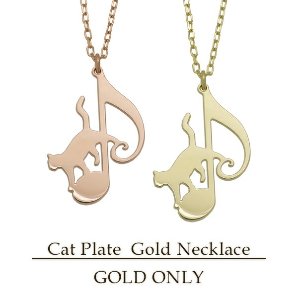 K10 YG PG 散歩 猫 音符 プレート ネックレス 10金 10k k10 ピンク ゴールド レディース 女性用 ねこ ネコ...