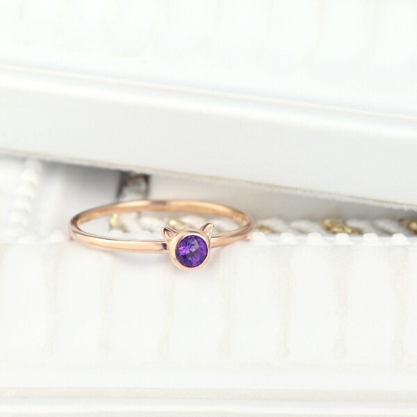 猫 アメジスト ゴールド リング K10 ピンクゴールド キャット 猫リング 天然石 一粒 指輪 10金 10k かわいい 猫好き...