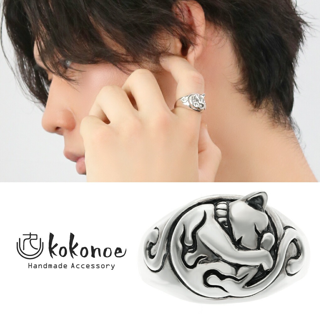kokonoe 眠り猫 猫又 リング 指輪 15~21号 メンズリング シルバー 925 猫 ねこ 化け猫 動物 妖怪 和風 和小...