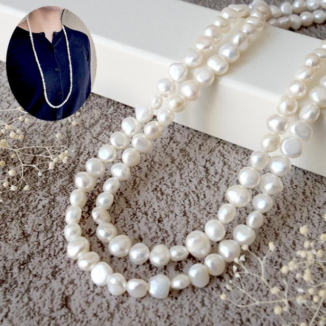 日本製【100. 淡水パール ネックレス 80cm ポテト型 ホワイト 】7.5mm 真珠 天然 パール ロングネックレス フォー...