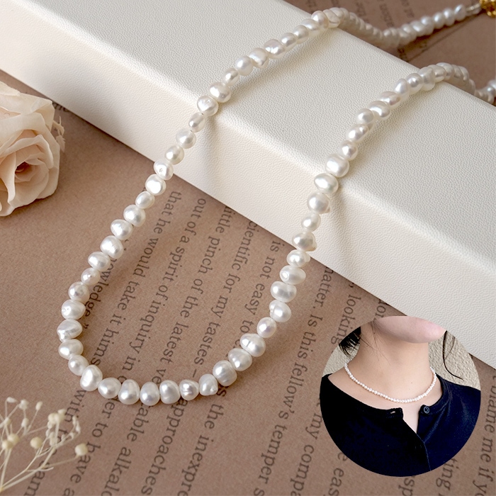 日本製【102. 淡水パール ネックレス 40cm ポテト型 ホワイト】 ベビーパール 真珠 天然 パール チョーカー カジュアル...