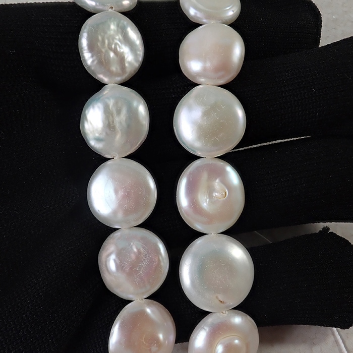 【有核 淡水真珠 約12-14mm】ホワイト コイン型 天然 大粒 テリ良し 約37cm 連 アクセサリー