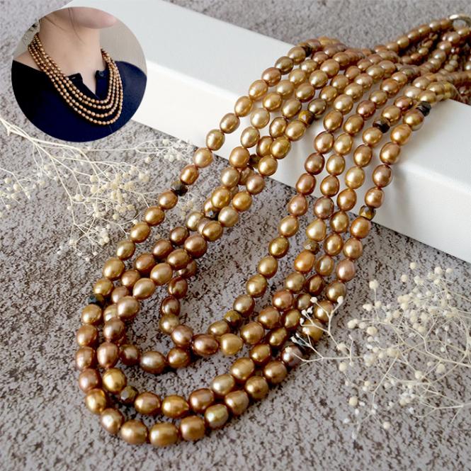 日本製【105. 淡水パール 4連ネックレス 60cm ブラウンゴールド】真珠 天然 ゴールド パール 金運 カジュアル フォーマ...