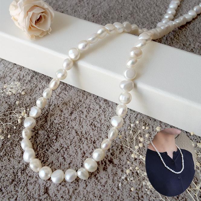 日本製【98. 淡水パール ネックレス 60cm ポテト型 ホワイト 】8mm 真珠 天然 パール ロングネックレス フォーマル ...