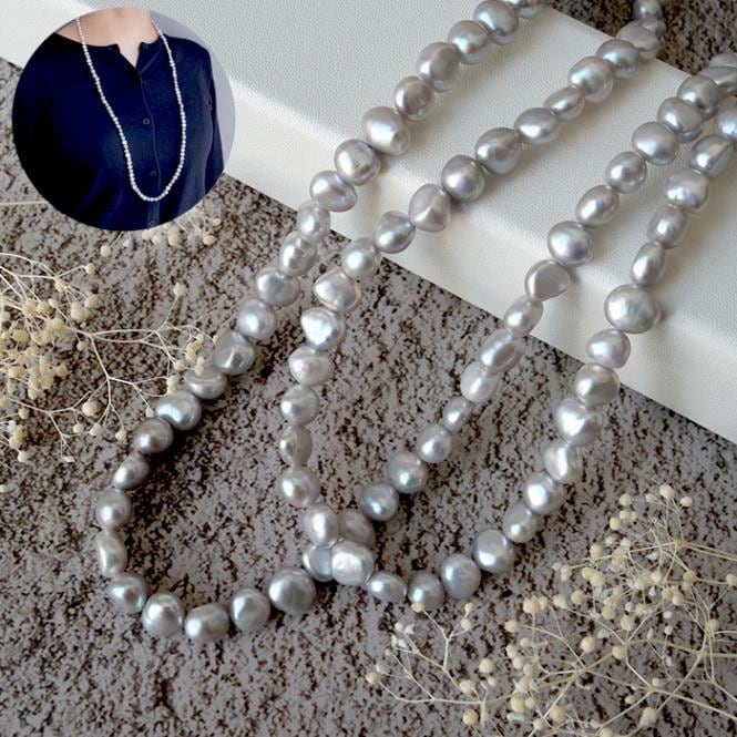 日本製【101. 淡水パール ネックレス 85cm ポテト型 ライトグレー】7.5mm 真珠 天然 グレー パール ロングネックレ...