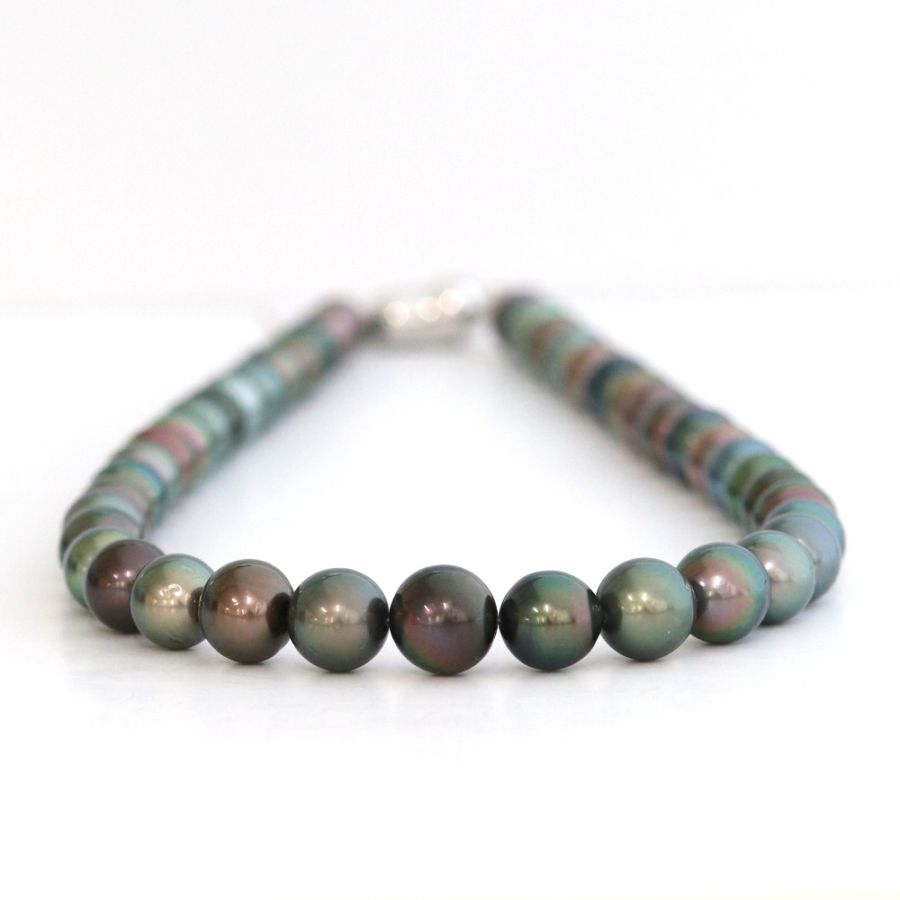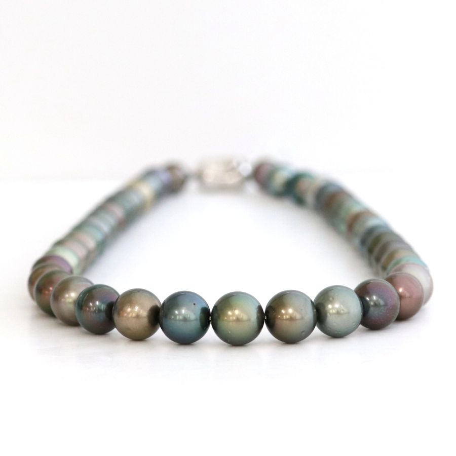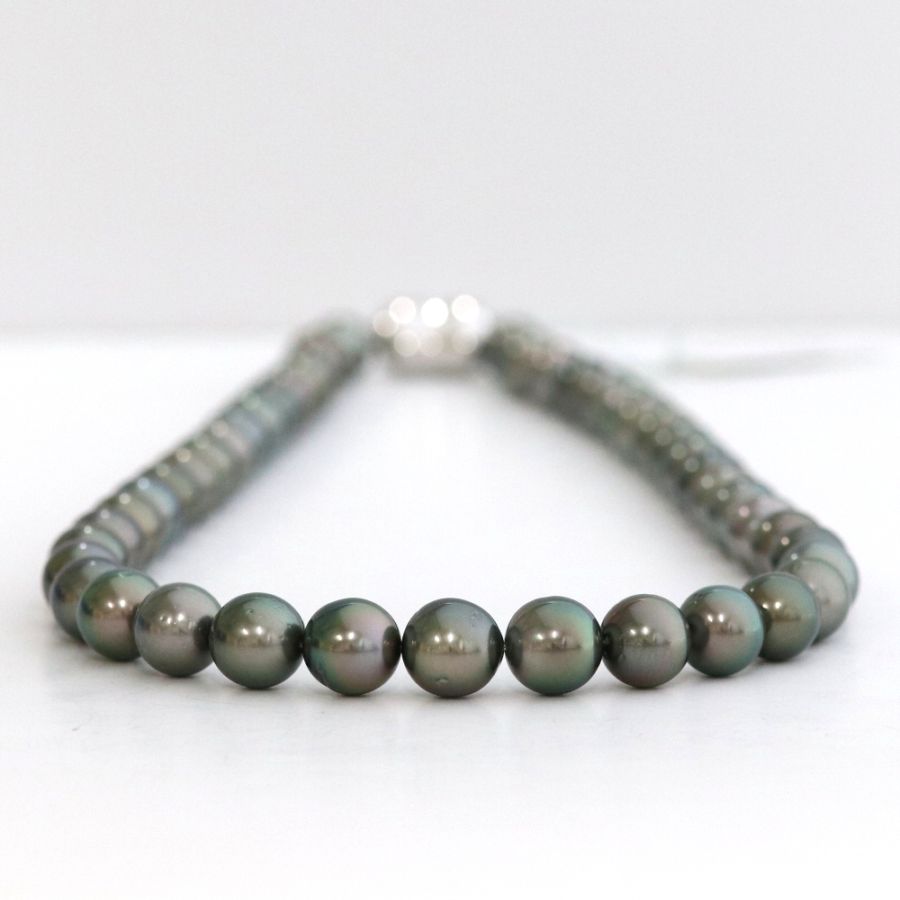 SVタヒチ産黒蝶真珠ネックレス【大きさ8.0-10.3mm・長さ43cm】ピーコック鑑別<340-2>