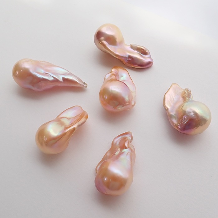 【有核 淡水真珠】大粒 穴なし 縦約20-29mm バロックパール 1粒 ピンクー系~虹色光沢 ハンドメイド用