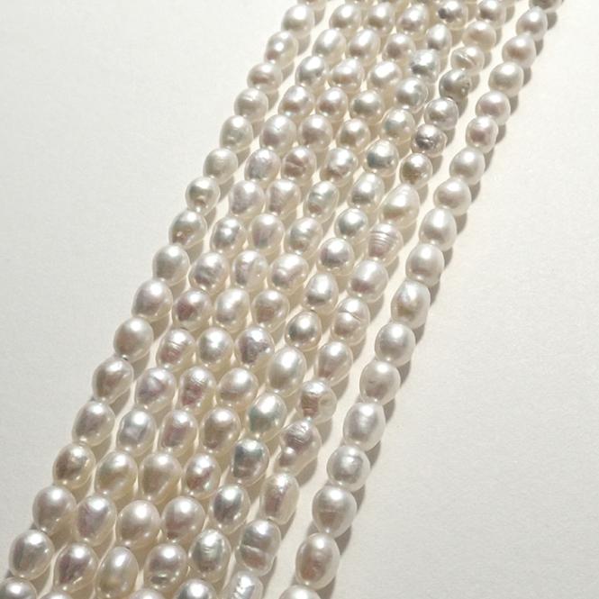 【237. オーバル 淡水パール ビーズ 連】ミニサイズ 約3.5*4.5/粒 約38cm ホワイト 国内発送 淡水真珠