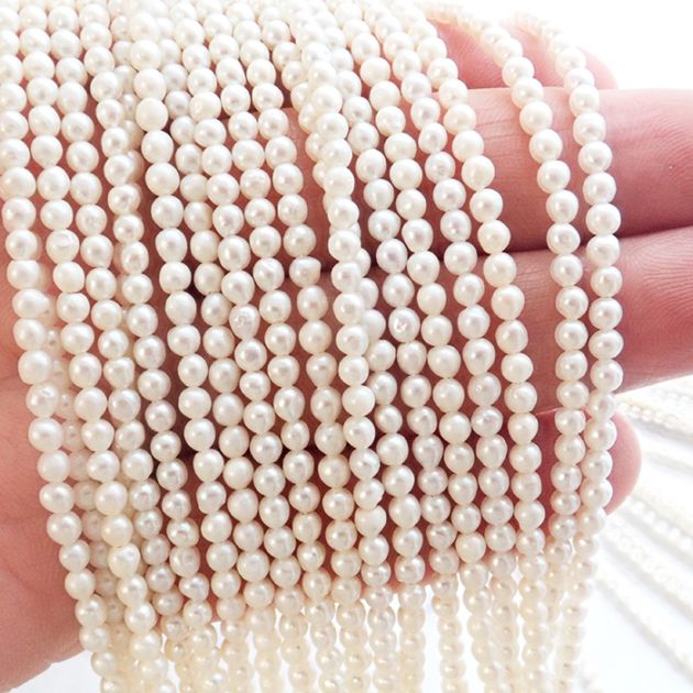 【235. ボタン 淡水パール ビーズ 連】 ミニサイズ 約3.5*3mm/粒 約40cm ホワイト 淡水真珠