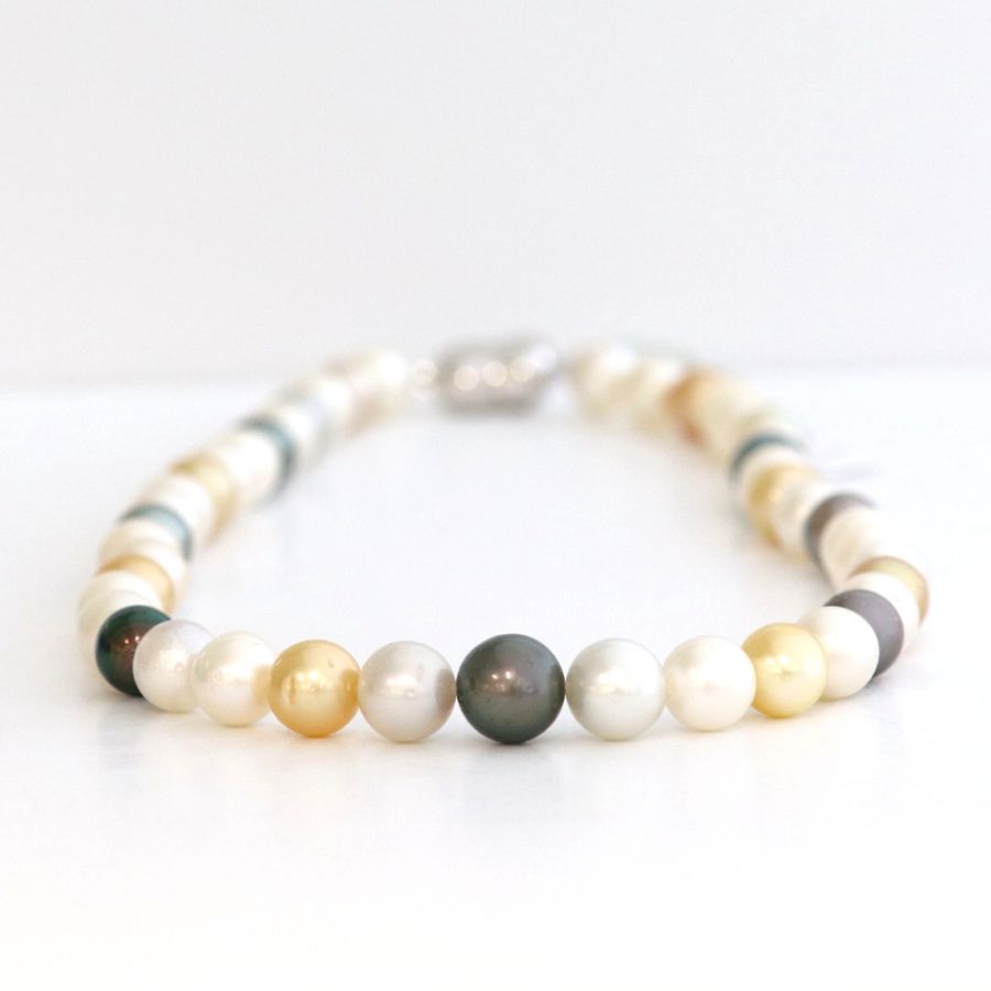 SV白蝶・黒蝶真珠マルチカラーネックレス【大きさ8.5-10.9mm・長さ42.5cm】<349-14>