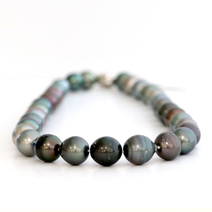 SVタヒチ産黒蝶真珠マルチカラーネックレス【大きさ11.1-13.9mm・長さ46cm】<330-15>