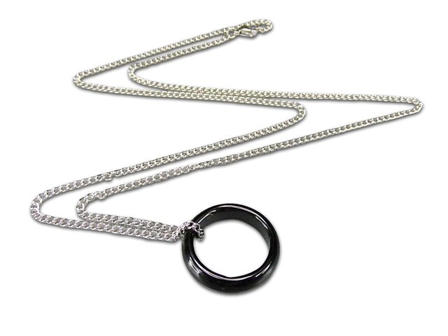 天然石オブシディアンバンドリング指輪14-15号チェーン付きネックレス