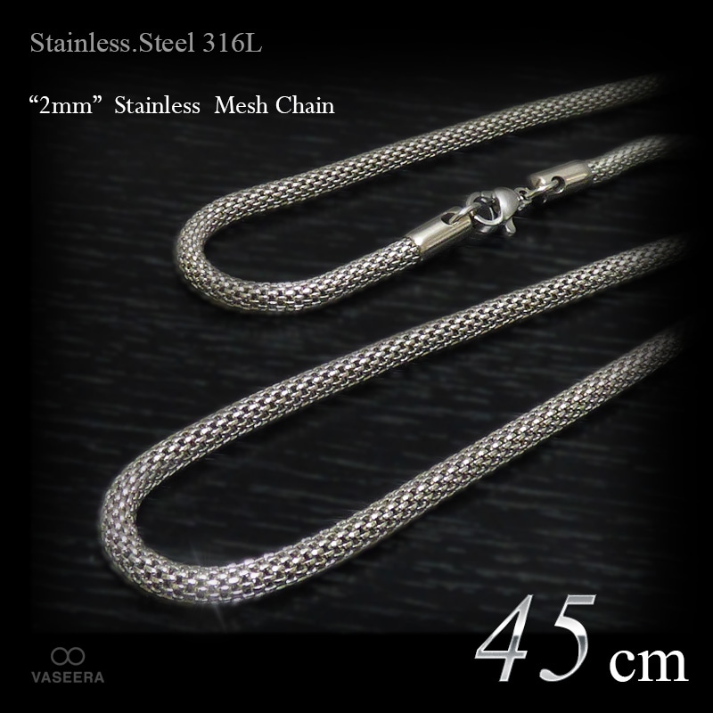 2mm幅 ステンレス メッシュ仕上げ チェーン 45cm(ショートサイズ) 【ステンレススチール316L(SUS316L) /サー...