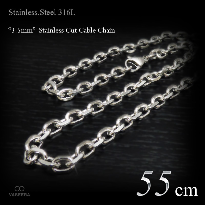 3.5mm幅 ステンレス 2面カットあずき チェーン 55cm【ステンレススチール316L(SUS316L) /サージカルステンレ...