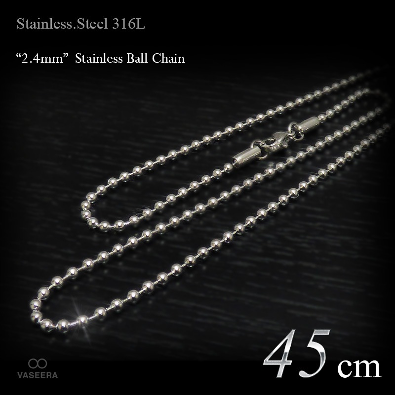 2.4mm幅 ステンレス ボールチェーン 45cm(ショートサイズ) 【ステンレススチール316L(SUS316L) /サージカル...