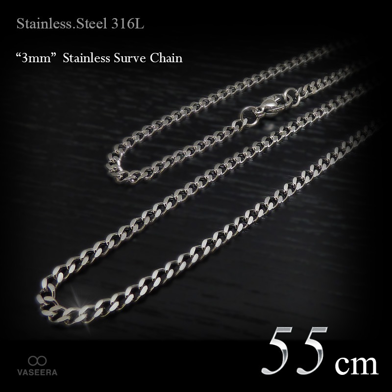 3mm幅 ステンレス 4面カット喜平 チェーン 55cm【ステンレススチール316L(SUS316L) /サージカルステンレス】