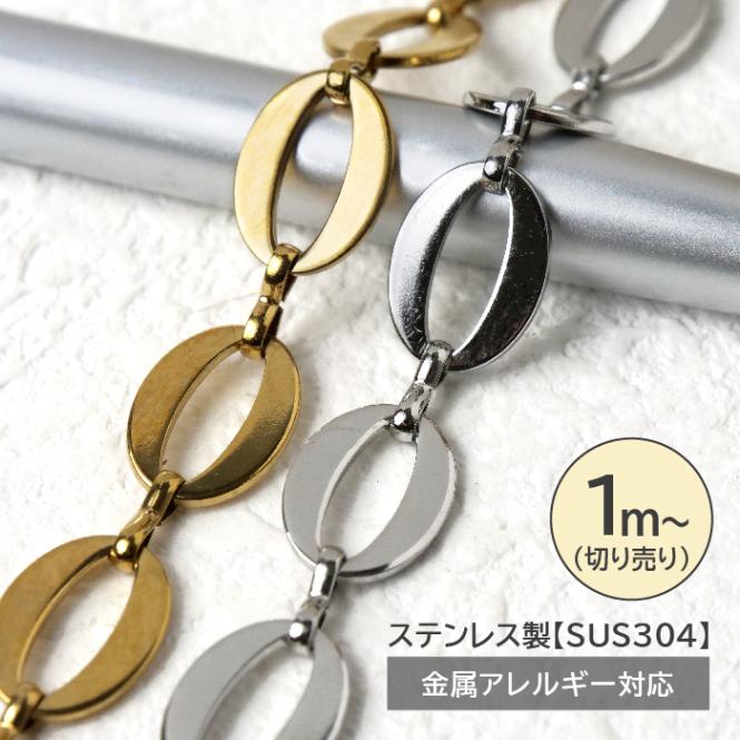 【切り売り/約1m】SUS304ステンレス製 オーバルチェーン 幅約10mm 金属アレー対応 高耐久 ネックレス