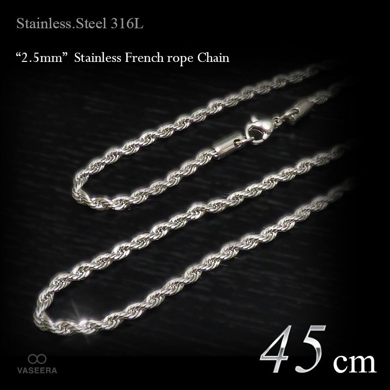 2.5mm幅 ステンレス フレンチロープ チェーン 45cm(ショートサイズ) 【ステンレススチール316L(SUS316L) /...