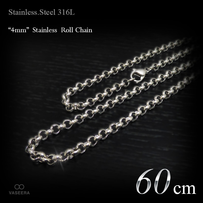 4mm幅 ステンレス ロール・チェーン(甲丸/真円あずき) 60cm 【ステンレススチール316L(SUS316L) /サージカル...