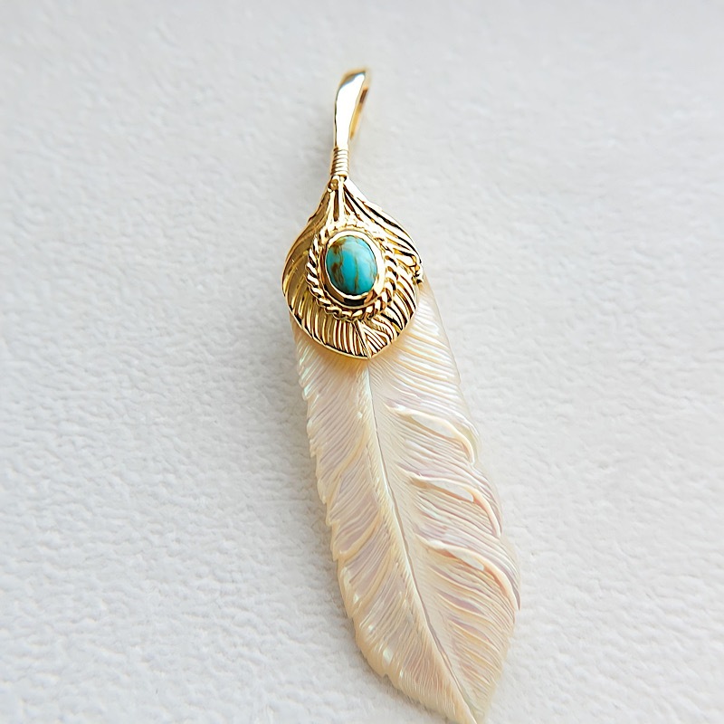 受注制作 夜光貝のハートフェザー大フェザーネックレス 【King of the Earth】