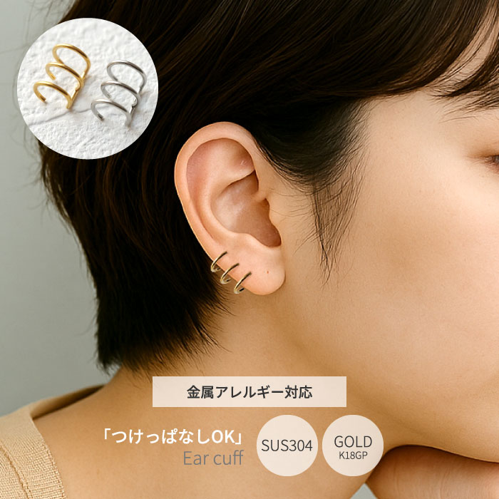 SUS304ステンレス製 イヤーカフ 片耳売り 3連デザイン 金属アレルギー対応 幅14mm 痛くない