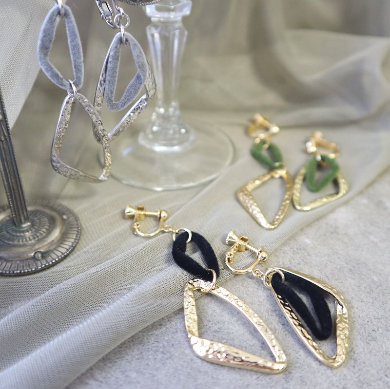 イヤリング ツインラインフレーム スクエア ハート アソート