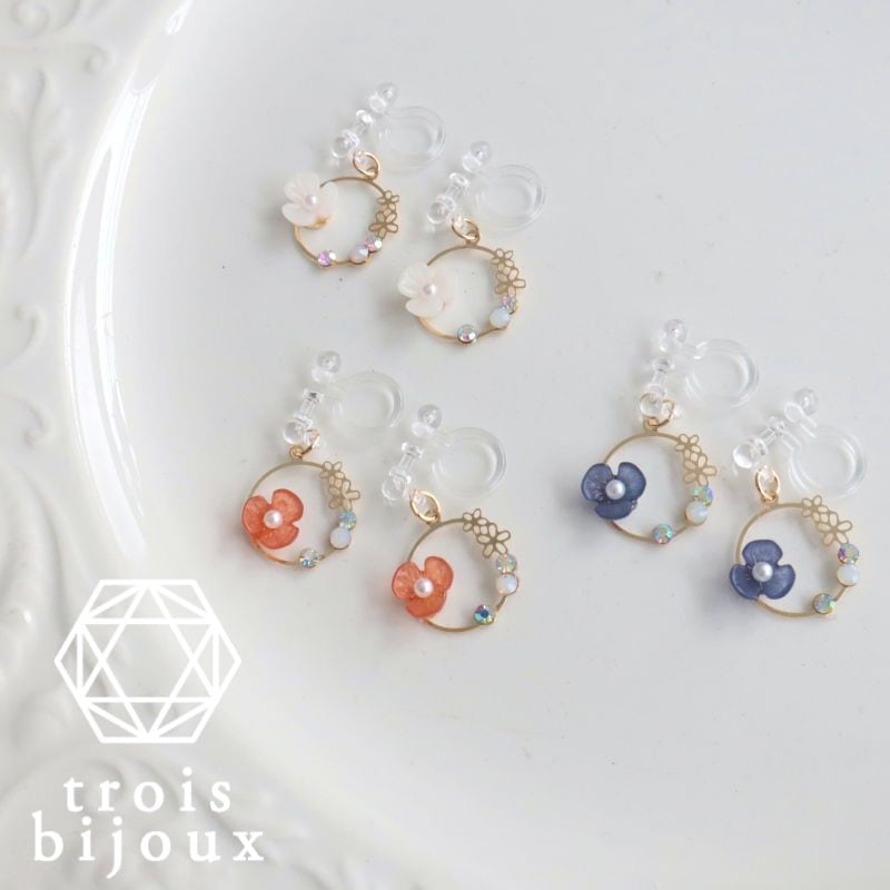 シリコンノンホールイヤリング プチツートンアクリルフラワー