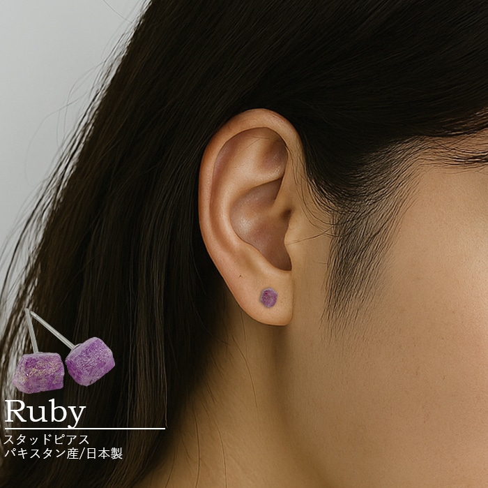 ルビー原石 スタッドピアス 天然石 パキスタン産 日本製 7月誕生石 ギフト プレゼント レディース アクセサリー ナチュラル フ...