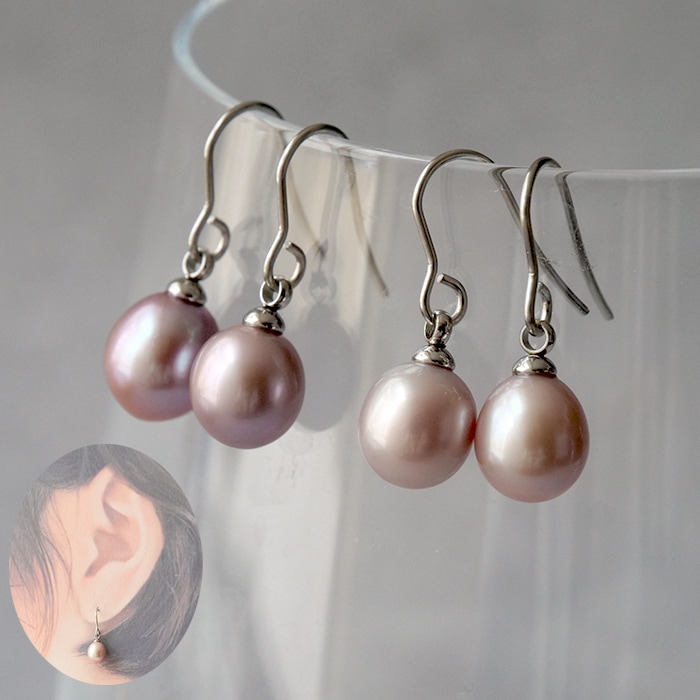淡水パール【271. ラベンダー フックピアス / イヤリング 1ペア】7mm 金アレ対応 ステンレス 金属アレルギー対応 オケー...