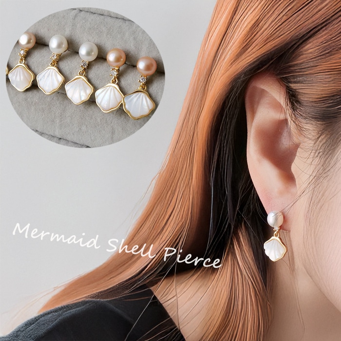 【264. 淡水パール マーメイド シェル ピアス 6mm 1ペア】 シルバーポスト SV925 真珠 オケージョン フォーマル ...