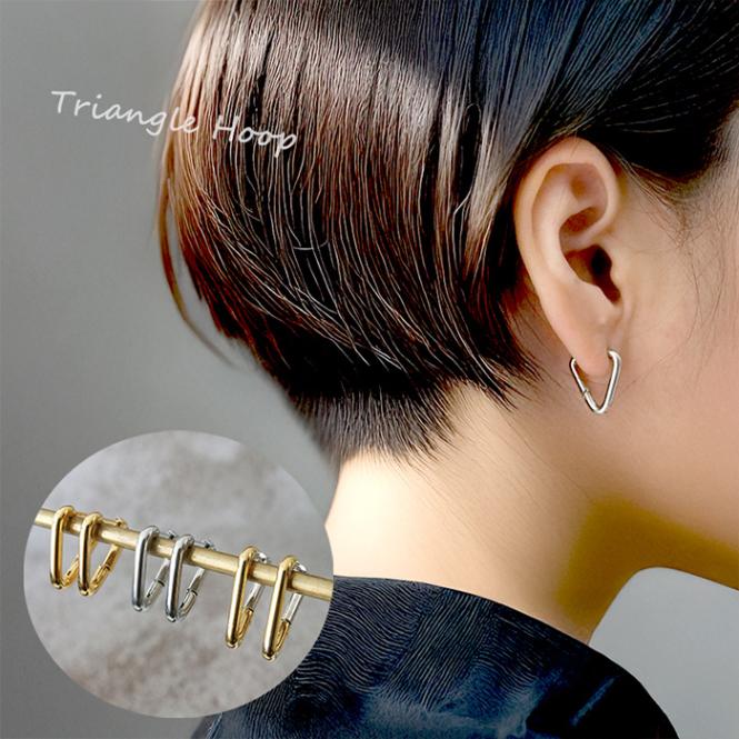 金属アレルギー対応 ステンレスピアス 【259. トライアングル フープピアス 3色 1ペア】 サージカル 316 つけっぱなし ...