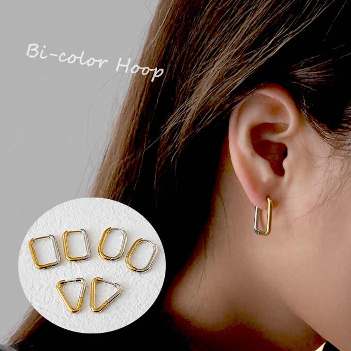 金属アレルギー対応 ステンレスピアス 【261. バイカラー フープピアス 1ペア】 サージカル 316 つけっぱなし 金アレ 変...