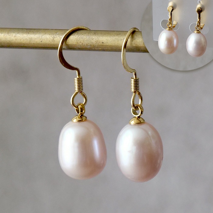 【送料無料】67.淡水パール オーバル ピアス・イヤリング 9mm-11mm 1ペア 一粒 大粒フォーマル ドロップ ステンレス製...