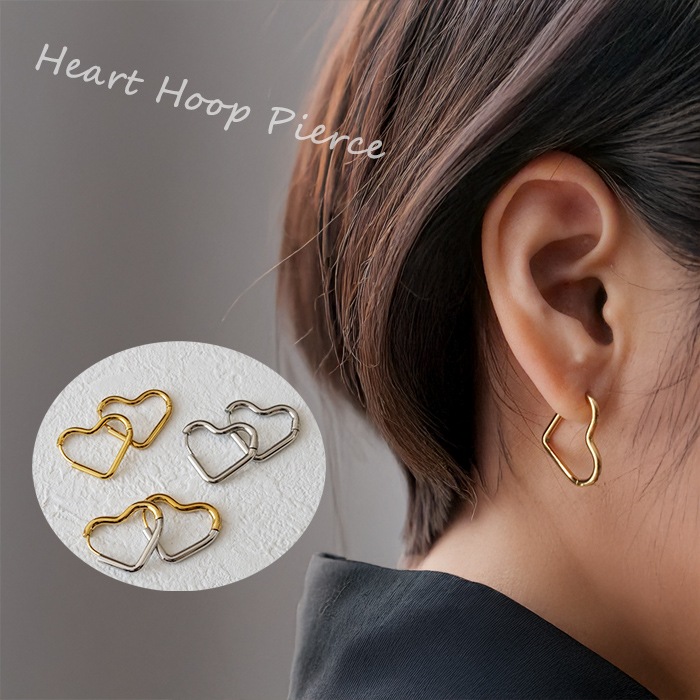 金属アレルギー対応 ステンレスピアス 【260. ハート フープピアス 2色 1ペア】 サージカル 316 つけっぱなし 金アレ ...