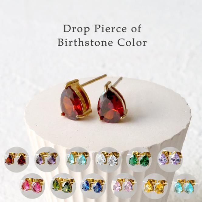 金属アレルギー対応 【145.誕生石カラー ドロップカット ピアス 6mm x 8mm K9クリスタル 1ペア】 ステンレス ス...