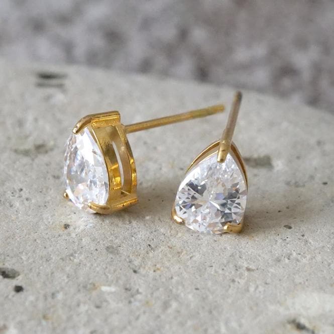 金属アレルギー対応 【147. K9クリスタル ドロップカット ピアス 6mm x 8mm 1ペア】クリア 透明 ゴールド ステン...