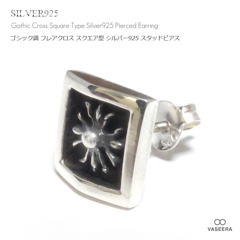 【単品販売(一個)】 ゴシック調 フローラル フレア クロス スクエア型 シルバー925 スタッドピアス 【シルバーピアス / ...