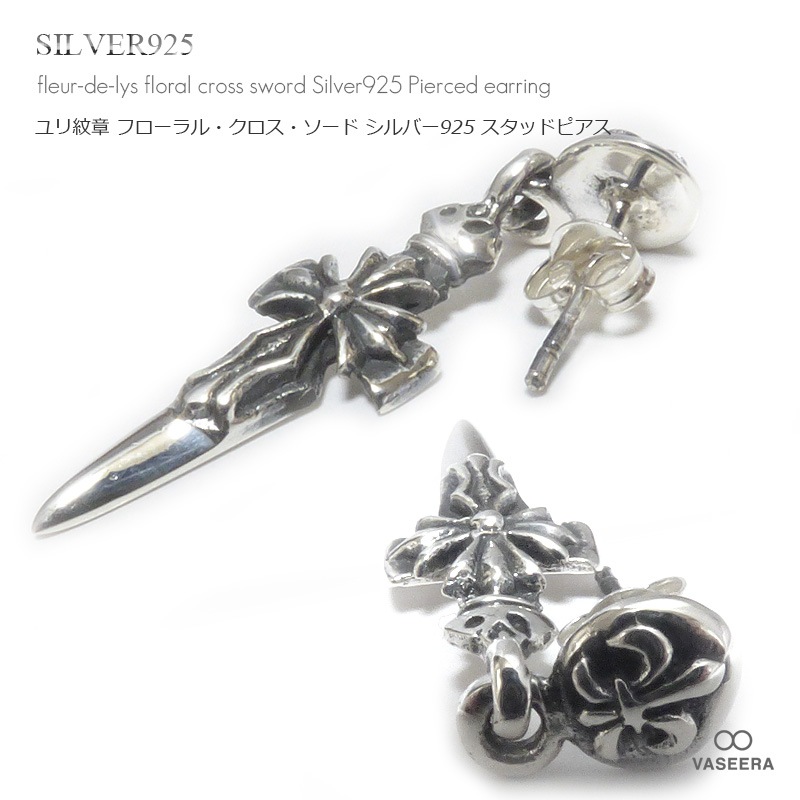 【単品販売(一個)】 ユリ紋章 フローラル・クロス・ソード(剣型) シルバー925 スタッドピアス 【シルバーピアス / SIL...