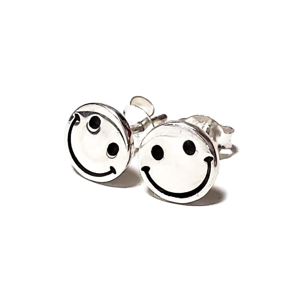 【二個セット(両耳用)】8mm スマイリーフェイス(スマイリーマーク) シルバー925 スタッドピアス 【シルバーピアス / ...