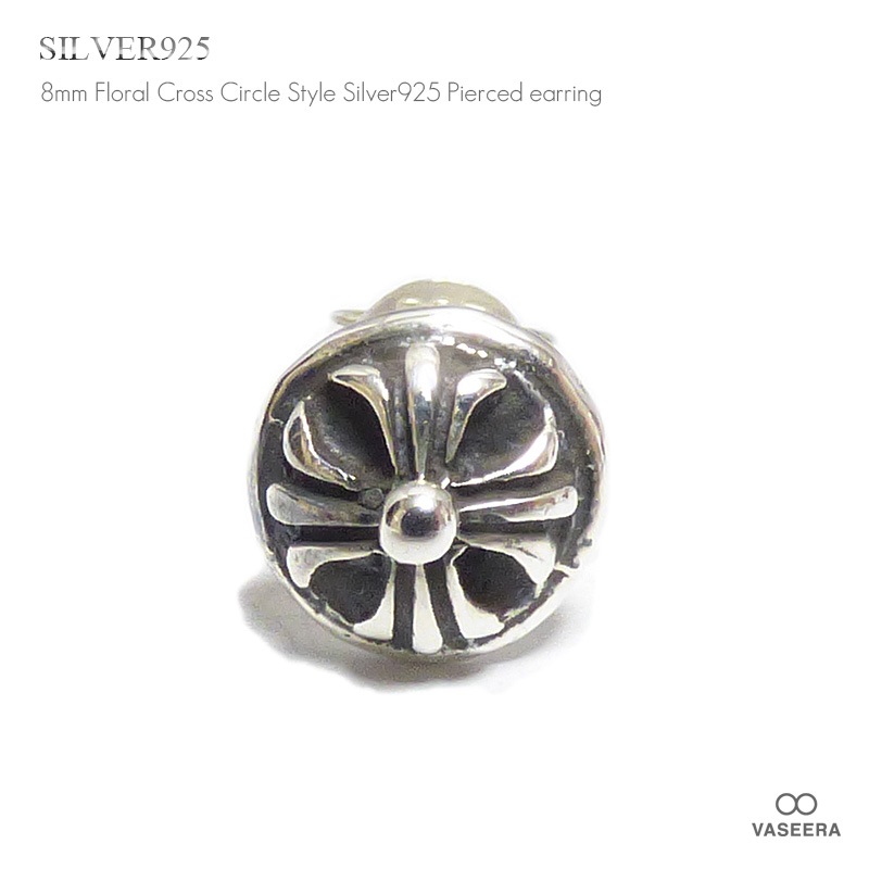 【単品販売(一個)】 8mm サークル型 フローラル・クロス シルバー925 スタッドピアス 【シルバーピアス / SILVER...