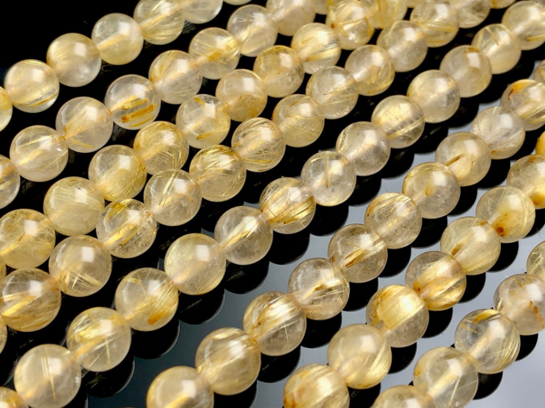 びっしり金針★金運を司る人気石★4A/天然石ビーズ/ゴールドルチル/ラウンド/8mm/1連【天然石/パワーストーン】【アメリカツー...