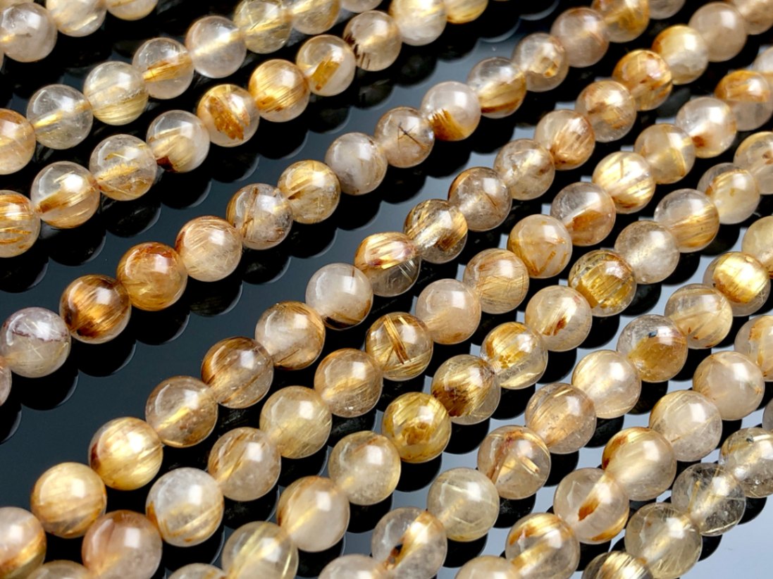 びっしり金針★金運を司る人気石★天然石ビーズ/ゴールドルチル(Rutilelated quartz/針入り水晶)/ラウンド/約6....